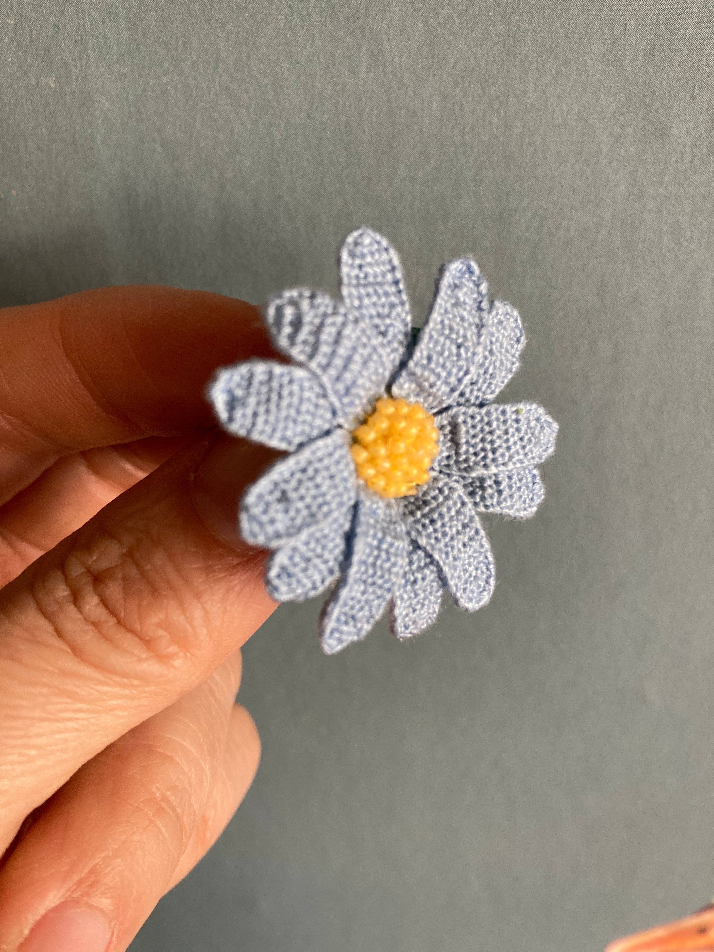 ディタッチトボタンホール・ステッチの魅力に惹かれ、さまざまな生き物をモチーフに立体刺繍でブローチを作り始める。